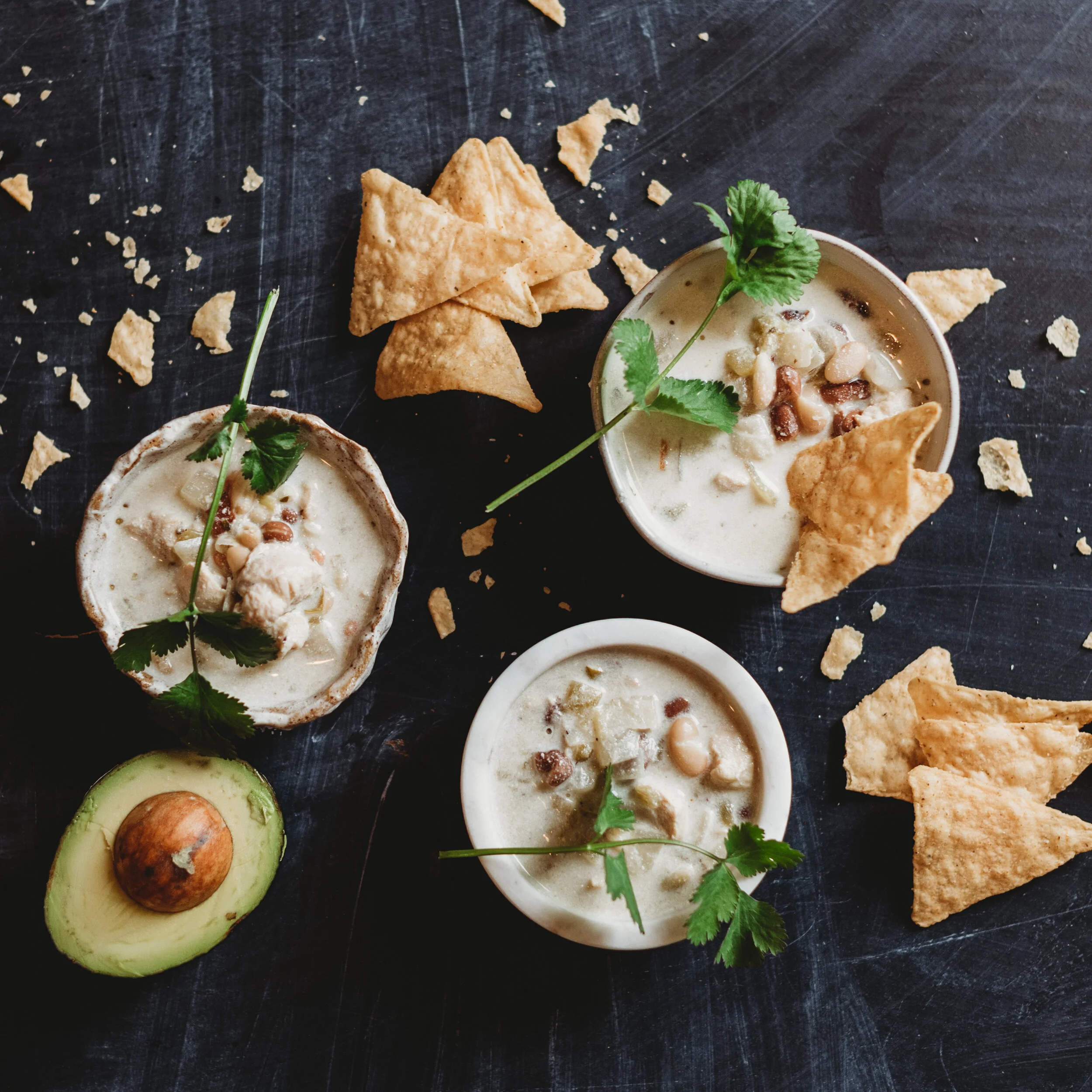 If warm hugs were a meal, this chili is exactly that. Cozy up with this flavorful white chili that even has a vegetarian option covered. Top off your bowls with avocados or jalapeño and serve with chips or cornbread.
