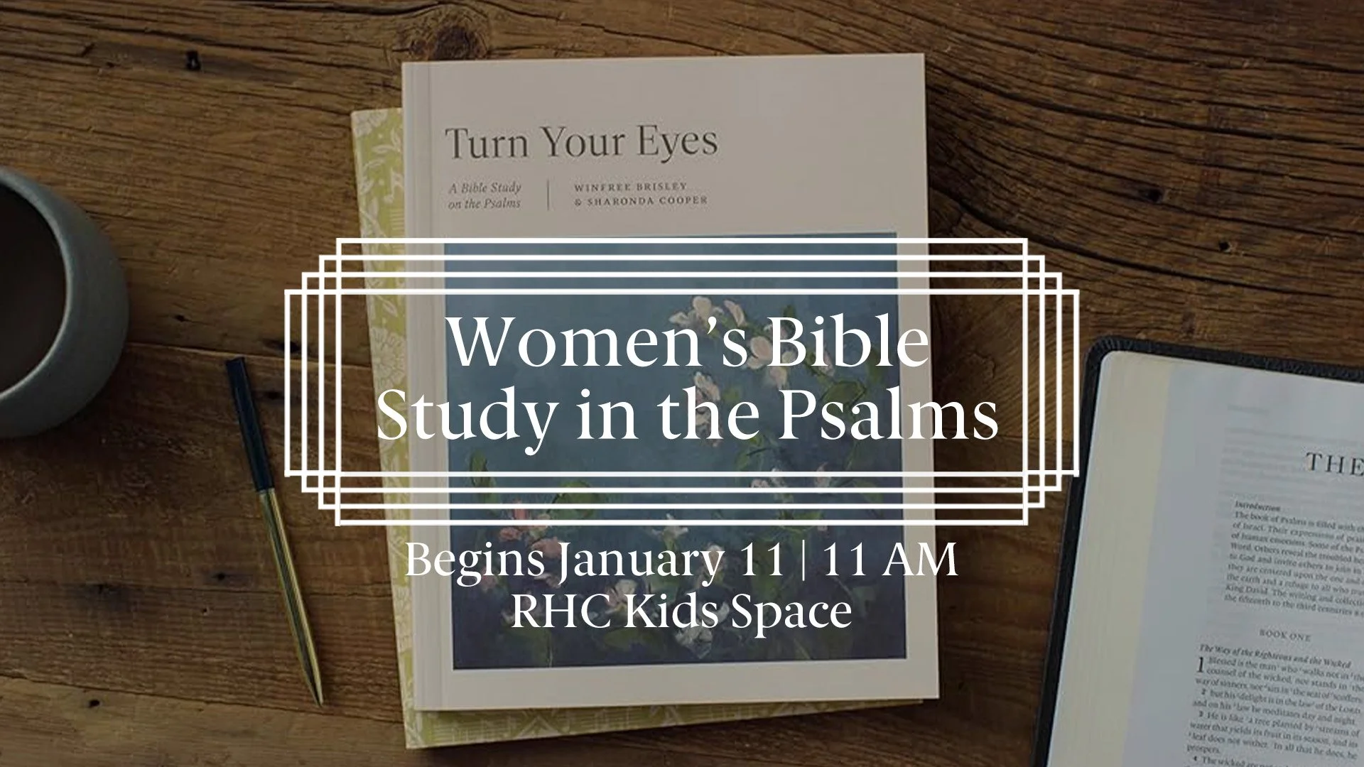 Join other women from Redemption Hill as we Turn Our Eyes to Christ by studying the Psalms. Esther Chung will lead this study on Sundays. We will gather every 3 weeks to discuss the next section in the Redemption Hill Kids space upstairs.